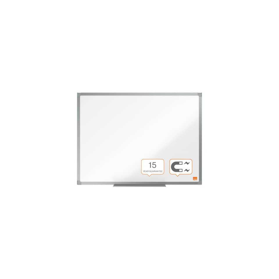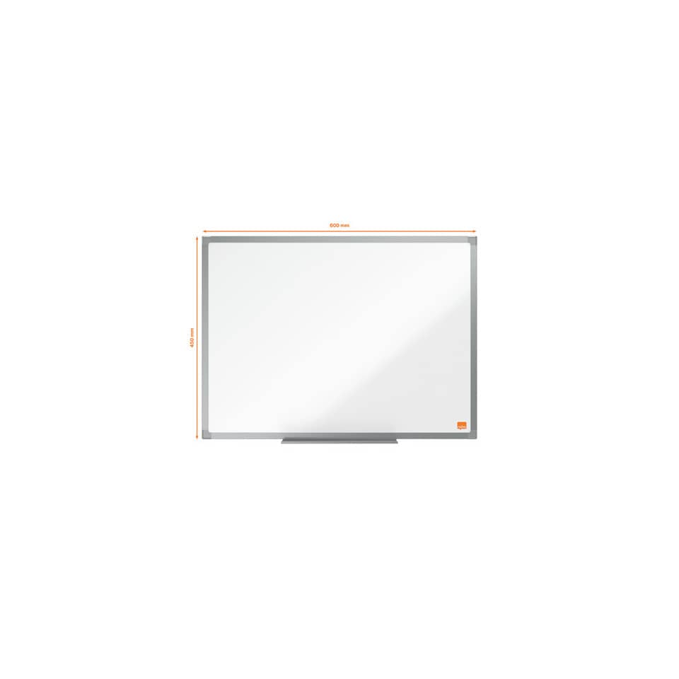 Lavagna bianca magnetica in acciaio laccato con cornice in alluminio anodizzato. Con sistema di montaggio angolare e vaschetta porta accessori. La superficie della lavagna magnetica in acciaio laccato offre una cancellabilità migliorata per un uso moderato. Garanzia di 15 anni. Dimensioni: 60x45mm.