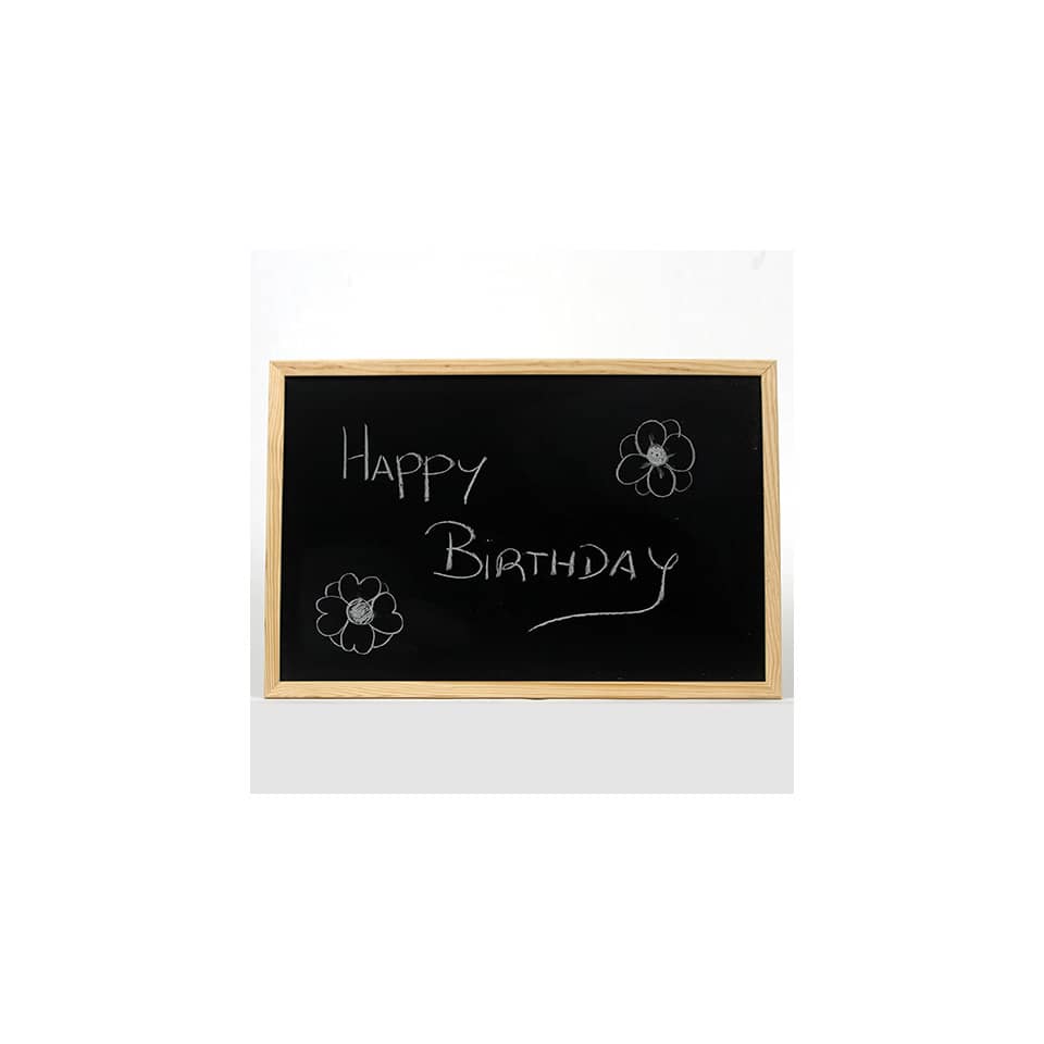 Lavagna nera scrivibile e cancellabile con cornice in legno, gesso e ganci di fissaggio inclusi. Dimensioni: 40x60 cm.