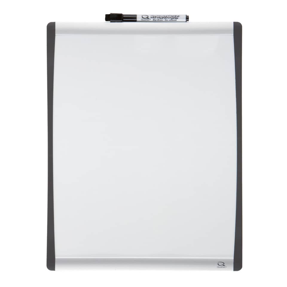 Lavagna bianca magnetica cancellabile a secco Quartet, 355 x280 mm, con elegante cornice ad arco nera e argento.