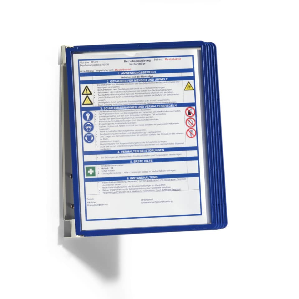 Leggio da parete con supporto da muro in metallo Vario® Wall 5 Durable – 5 pannelli – A4 – Blu