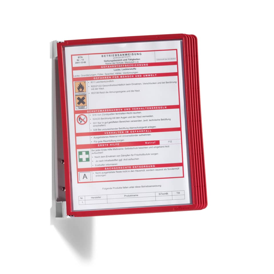 Leggio da parete DURABLE VARIO® WALL 5 pannelli A4 metallo/polipropilene rosso 555103 è la soluzione ideale per organizzare documenti, brochure e materiali informativi in modo chiaro e accessibile. Questo sistema offre un modo efficace per esporre contenuti in ambienti come uffici, scuole, sale d'attesa e spazi espositivi.