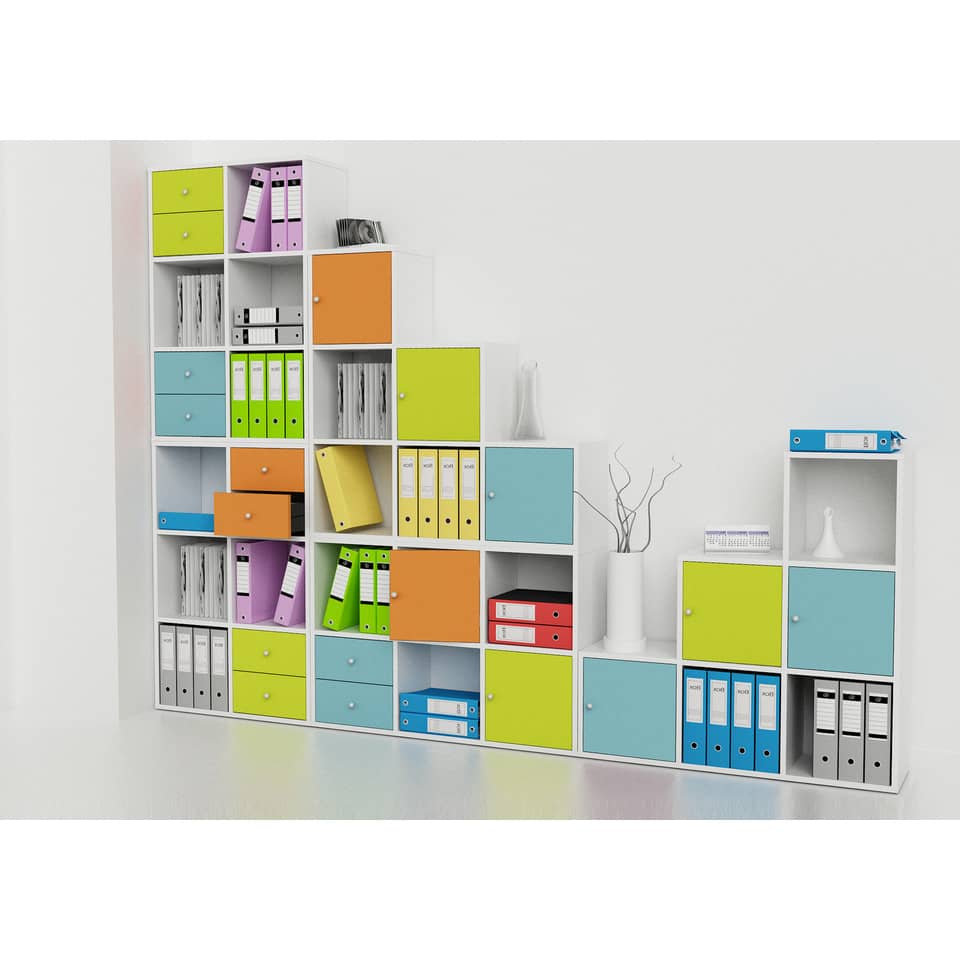 Libreria multifunzione componibile per sovrapposizione e/o affiancamento. Realizzata in melaminico bilaminato spessore 18 mm conforme alle norme UNI e EN classe E1. Possibilità di inserire kit 2 cassetti o antina nelle singole caselle. Versioni: 3, 6, 9 caselle e 6 caselle scalare.