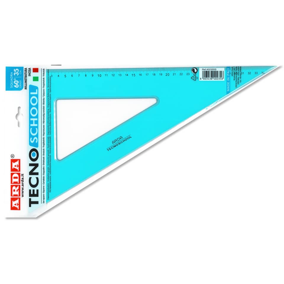 Squadra ARDA Linea Tecnoschool polistirolo termoresistente azzurro trasparente 60° cm 35 – 40235SS