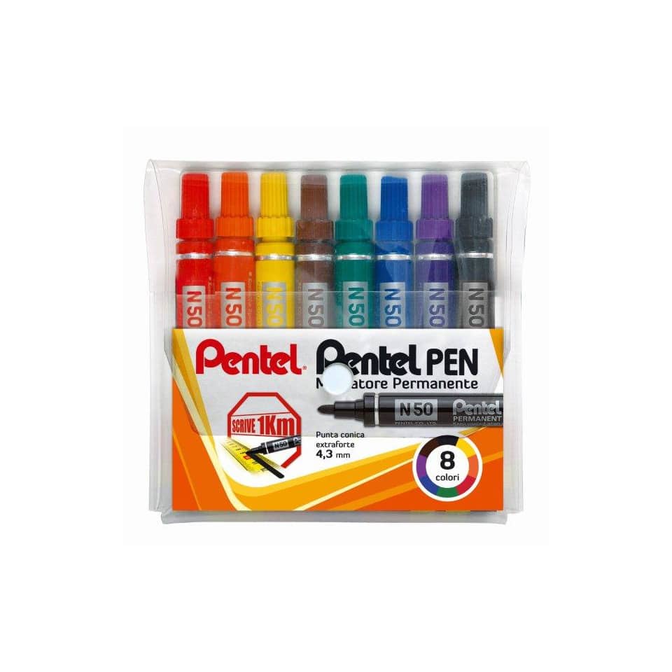 Pentel pennarelli indelebili – Pentel N50 – Tonda – 4,3 mm – Assortito (conf.8)
