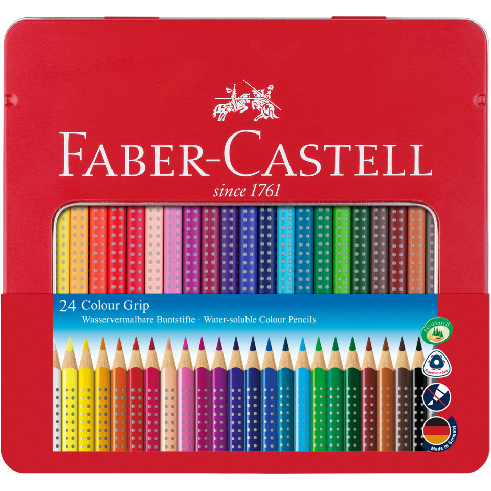 Faber Castell Matite Colorate Acquerellabili triangolari Colour Grip – Astuccio Metallo (conf.24)