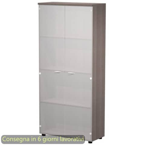 Mobile alto della linea Presto, una linea operativa contemporanea progettata per un utilizzo quotidiano ed intensivo in grado di soddisfare tutte le esigenze funzionali ed estetiche. La gamma completa degli elementi permette di allestire ogni ambiente di lavoro, personalizzandolo con stile. Scrivanie con dimensioni conformi alle normative sulla sicurezza dei posti di lavoro in ufficio. Dimensioni L. 80 x P. 35 x H. 180 cm. Top sp. 22 mm. Struttura, ante e ripiani sp. 18 mm. Tre ripiani regolabili in altezza con un sistema di bloccaggio nella posizione desiderata. Ante in vetro satinato senza serratura. Il mobile, rifinito posteriormente nello stesso colore della struttura, può essere utilizzato come parete divisoria. Dotato di piedini regolabili in altezza per un perfetto livellamento sul pavimento. Imballi in cartone riciclato alto spessore a tutela dell'ambiente. Produzione certificata conforme alle procedure UNI EN ISO 9001. Certificazioni FSC e PEFC. Struttura frassino toscano.