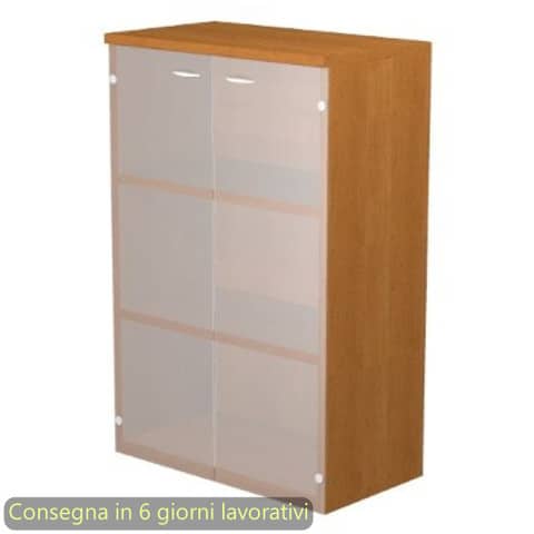 Mobile medio della linea Presto, una linea operativa contemporanea progettata per un utilizzo quotidiano ed intensivo in grado di soddisfare tutte le esigenze funzionali ed estetiche. La gamma completa degli elementi permette di allestire ogni ambiente di lavoro, personalizzandolo con stile. Scrivanie con dimensioni conformi alle normative sulla sicurezza dei posti di lavoro in ufficio. Dimensioni L. 80 x P. 35 x H. 120 cm. Top sp. 22 mm. Struttura, ante e ripiani sp. 18 mm. Due ripiani regolabili in altezza con un sistema di bloccaggio nella posizione desiderata. Ante in vetro satinato senza serratura. Il mobile, rifinito posteriormente nello stesso colore della struttura, può essere utilizzato come parete divisoria. Dotato di piedini regolabili in altezza per un perfetto livellamento sul pavimento. Imballi in cartone riciclato alto spessore a tutela dell'ambiente. Produzione certificata conforme alle procedure UNI EN ISO 9001. Certificazioni FSC e PEFC. Struttura noce chiaro.