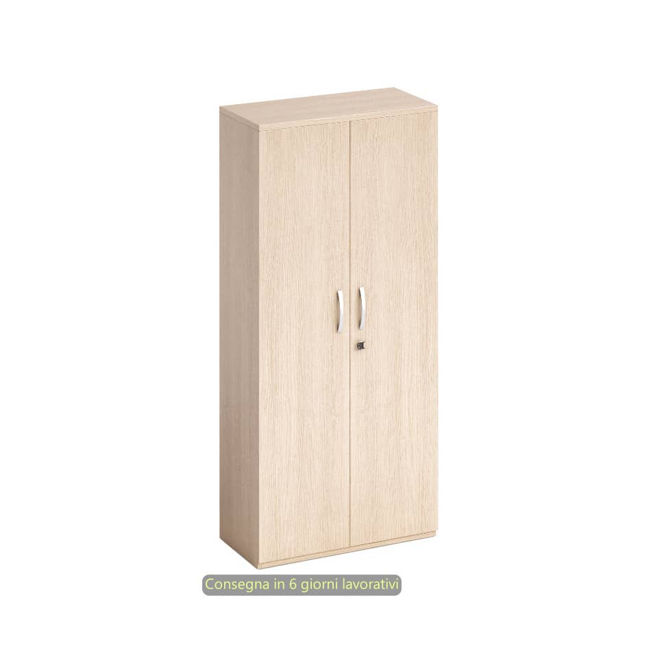 Mobile alto con ante cm 80 x 46 x 181,8 h, 1 ripiano fisso + 3 regolabili, rovere.I mobili, utilizzabili sia con la linea Bridge che con la Flex, hanno top sp. 25 mm, struttura e ripiani (sp. 16 mm), piedini regolabili in altezza. Completabili con ante in melaminico complete di serratura e maniglie in metallo. Rifiniti posteriormente nello stesso colore della struttura possono essere utilizzati come pareti divisorie.