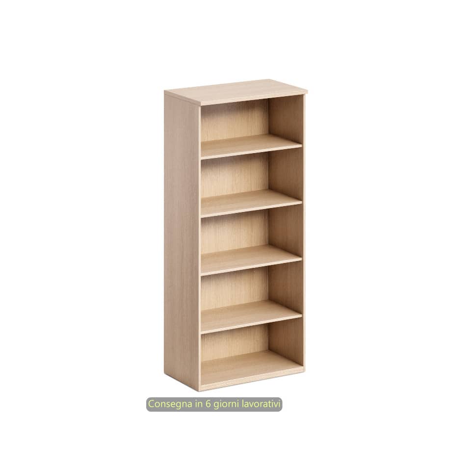 Mobile alto a giorno cm 80 x 46 x 181,8 h, 1 ripiano fisso + 3 regolabili, rovere.I mobili, utilizzabili sia con la linea Bridge che con la Flex, hanno top sp. 25 mm, struttura e ripiani (sp. 16 mm), piedini regolabili in altezza. Completabili con ante in melaminico complete di serratura e maniglie in metallo. Rifiniti posteriormente nello stesso colore della struttura possono essere utilizzati come pareti divisorie.