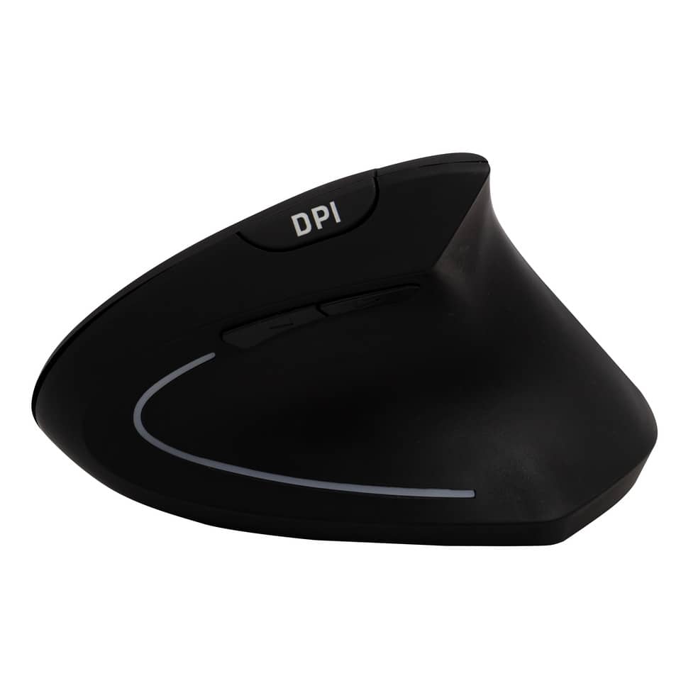 Mouse ergonomico verticale wireless. Colore nero. Per destri. Dotato di 6 bottoni e luce led. Funzionamento a batteria con n°2 AAA (non incluse). Dimensioni: 123 x 65 x 82 mm.