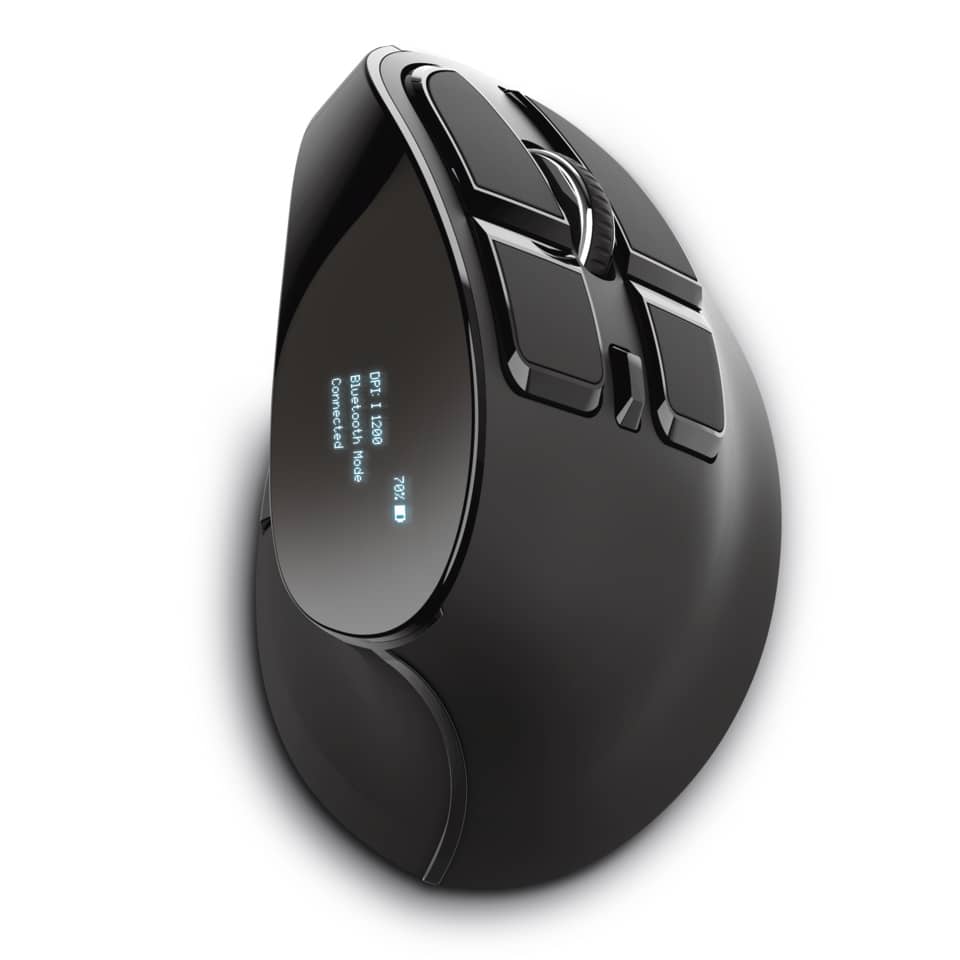Un mouse wireless ricaricabile con display digitale e design ergonomico verticale, per offrire il comfort ottimale. Il design ergonomico verticale riduce la tensione al braccio e al polso. Il display LED indica lo stato della batteria e della connessione, la modalità wireless e l’impostazione DPI. Ottimizza il tuo flusso di lavoro riassegnando le funzioni dei pulsanti tramite il menu su display LED. Utilizzabile via USB o Bluetooth su PC, laptop, tablet o smartphone. Attento all’ambiente: non richiede batterie, grazie alla batteria ricaricabile integrata; 9 pulsanti, tra cui pulsanti laterali azionabili con il pollice e facilmente accessibili (avanti e indietro) e pulsanti superiori con una presa ancora più salda. Perfetto controllo del cursore, con velocità regolabile (1200-1600-2000-2400 DPI). Interruttore di accensione/spegnimento per il risparmio energetico.