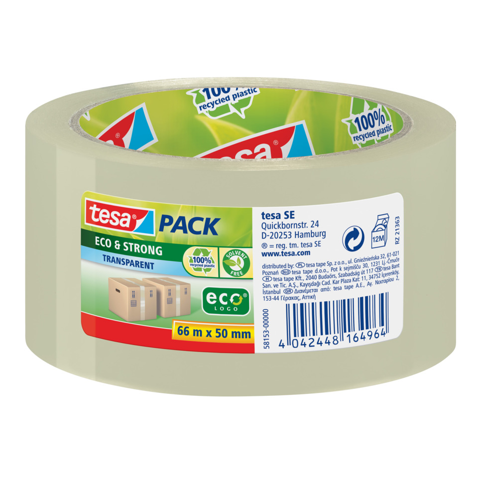 Nastro adesivo per la spedizione tesapack® eco&strong 50 mm x 66 m – Trasparente – 58153-00000-00