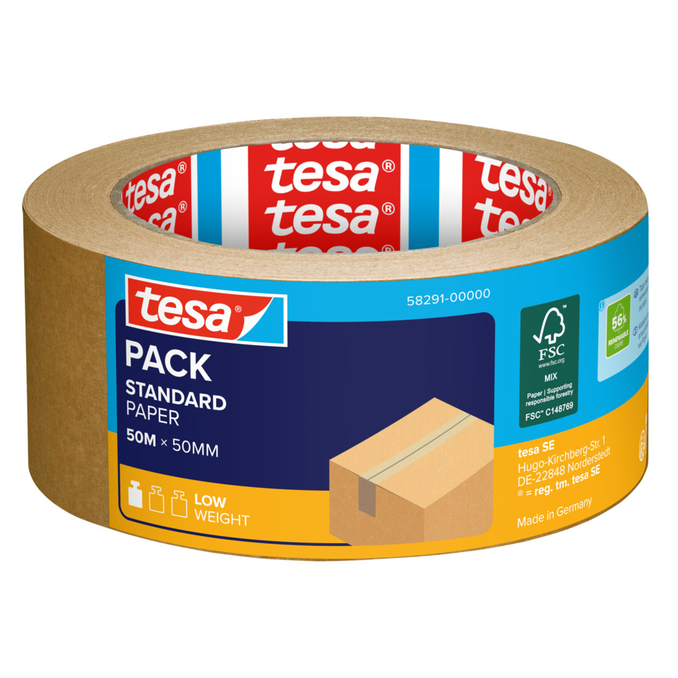 Nastro da imballaggio tesapack Paper Standard ecoLogo marrone 50 mm x 50 m - 58291-00000-00