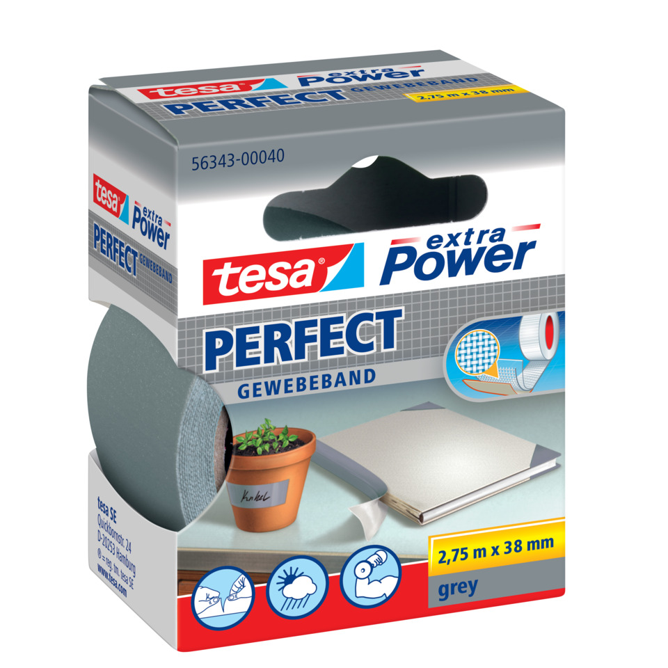 Tesa extra Power® Perfect fa parte della gamma Premium tra tutti i nastri per riparazioni tesa®. Questo nastro versatile di alta qualità è rinforzato in tessuto e si può usare per molte applicazioni in interni ed esterni. Può essere tagliato a mano, ma allo stesso tempo è molto resistente agli strappi e spicca per la sua resistenza agli agenti atmosferici e per la sua durabilità. Il nastro telato è disponibile in una ampia gamma di colori. Ci si può scrivere sopra, il che lo rende perfetto per lavori di artigianato, contrassegni, riparazioni e rilegature. Misura 2,75 m x 38 mm. Colore grigio. Codice produttore: 56343-00040-03