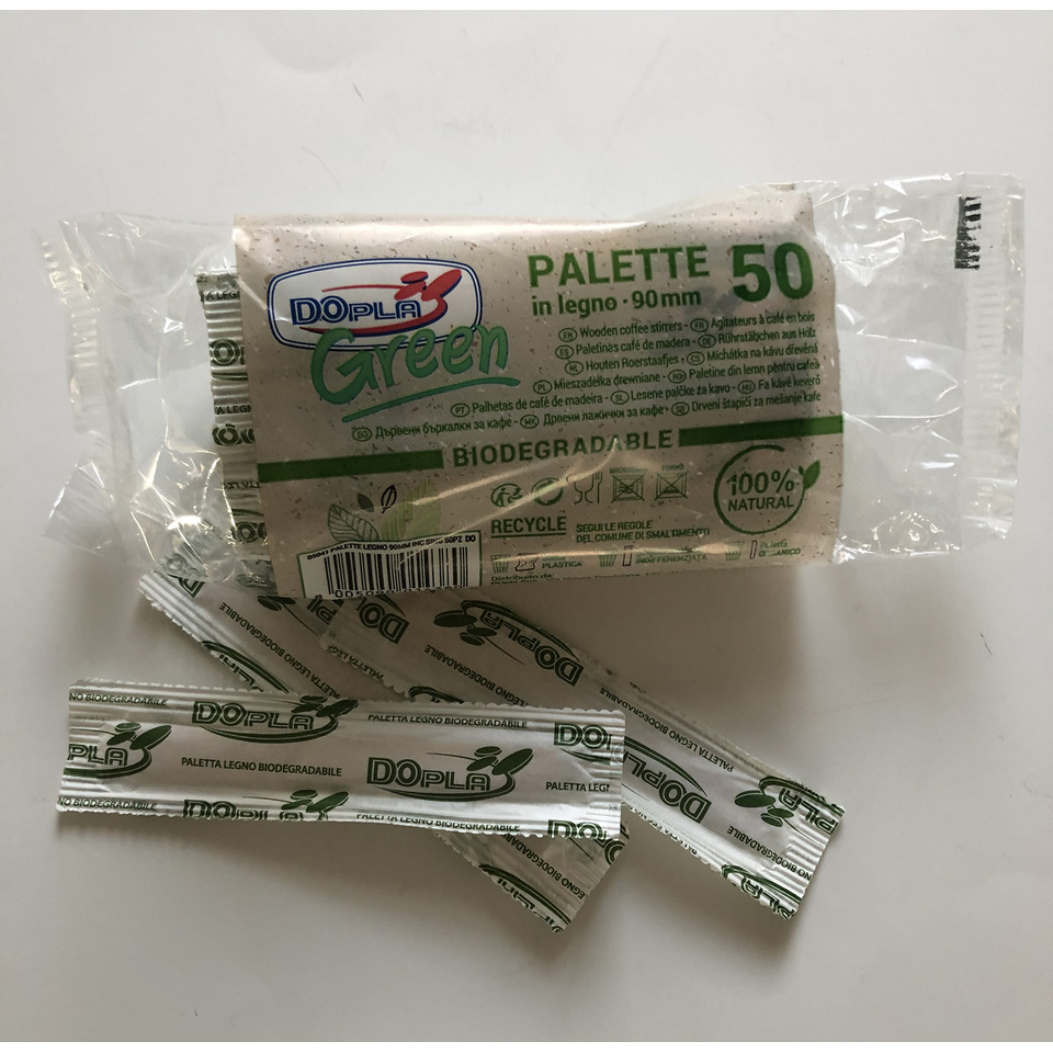 Palette da caffè Dopla Green in legno avana 90 mm – imbustate singolarmente – 5047 (conf.50)