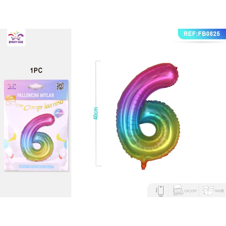 Palloncini Party Go multicolor indicante anni/eta’ H.40 cm n° 6 FB2136