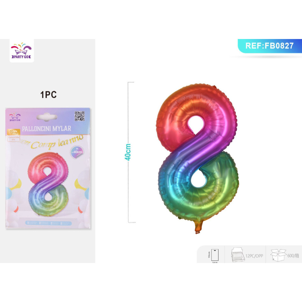 Palloncini Party Go multicolor indicante anni/eta' H.40 cm n° 8 FB2138
