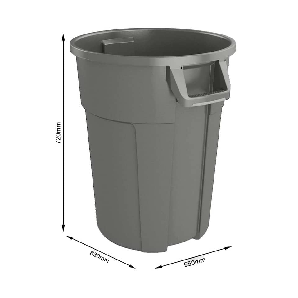Pattumiera TITAN da 120 LT con coperchio per raccolta differenziata. Ideale anche per uso esterno, molto robusta e resistente. Prodotto dotato di maniglie superiori per facilitare spostamento e manovra e di maniglie inferiori a scomparsa per agevolare sollevamento e spostamenti. Facile da pulire, lavare e disinfettare. Colore grigio. Dimensioni: 550 x 630 x 720 m. Codice produttore: F600092