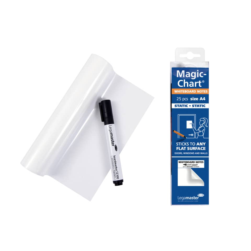 Pellicola elettrostatica da parete Legamaster Magic-Chart Whiteboard 25 fogli 20×30 cm – Bianco 7-159100-A4