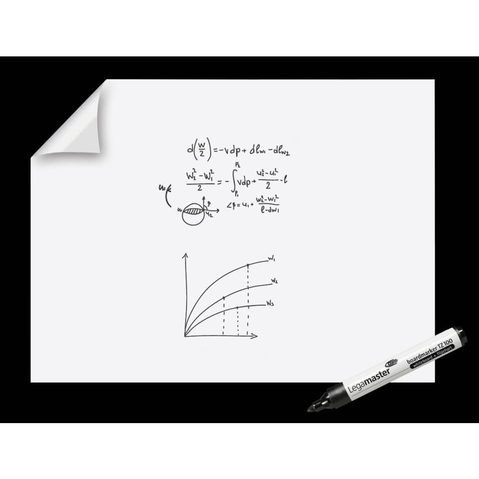Legamaster Magic-Chart XL Whiteboard è un foglio elettrostatico bianco che ti consente di presentare le tue idee in qualsiasi situazione. Questo Magic-Chart si attacca alle superfici senza adesivo e non lascia tracce. Il materiale elettrostatico aderisce facilmente a quasi tutte le superfici (legno, cemento, vetro, tappezzeria) perciò puoi presentare i tuoi piani e le tue idee quando serve. Magic-Chart XL Whiteboard consente la scrittura con qualsiasi marcatore, perciò è estremamente adattabile a qualsiasi situazione. Se utilizzato in combinazione con i marcatori da lavagna Legamaster, è possibile cancellare l'inchiostro e riutilizzare il foglio. Inoltre, è possibile applicare i fogli di presentazione e gli avvisi sulle superfici senza l'uso di adesivi. I fogli sono completamente riciclabili, perciò il prodotto è una scelta eco-responsabile. La confezione include un marcatore per lavagna TZ 100 per maggiore comodità.