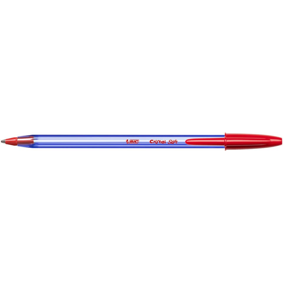 La penna a sfera con cappuccio, BIC Cristal Soft, offre una scrittura più scorrevole del 35% rispetto alle penne a sfera BIC classiche, grazie all'inchiostro Easy Glide. Fusto robusto in plastica azzurro trasparente per controllare il livello di inchiostro. Cappuccio, punta e tappino dello stesso colore dell'inchiostro. Punta: 1.2 mm Larghezza del tratto: 0.35 mm. Colore: Rosso. Confezione da 50 pz