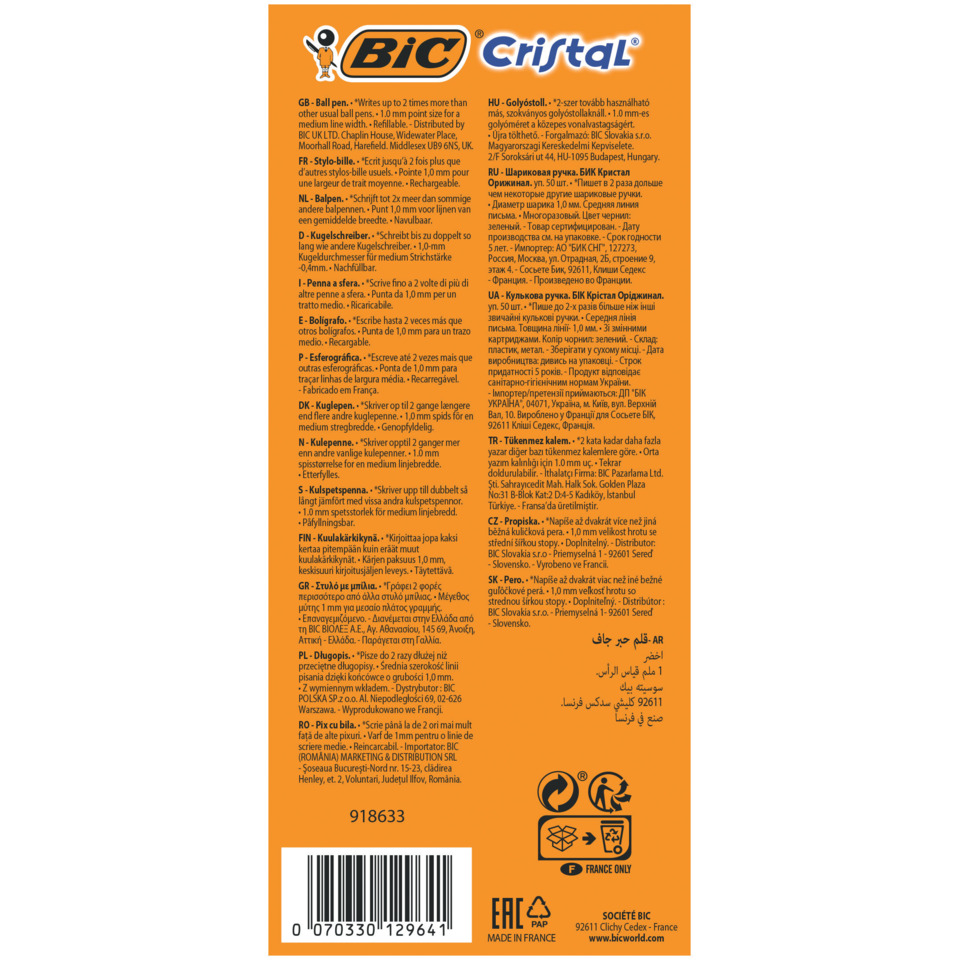 Penne a sfera Cristal® Bic – Medium Classic – Verde – 1 mm – cappuccio (conf.50)