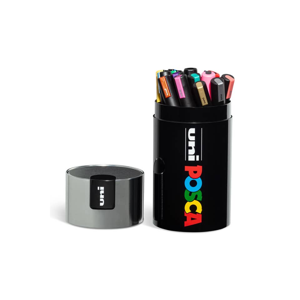 Pennarelli a tempera Uni Ball Uniposca in Gift Box – punta media Colori Assortiti – tappo barattolo Argento – M 84008608 (conf.18)