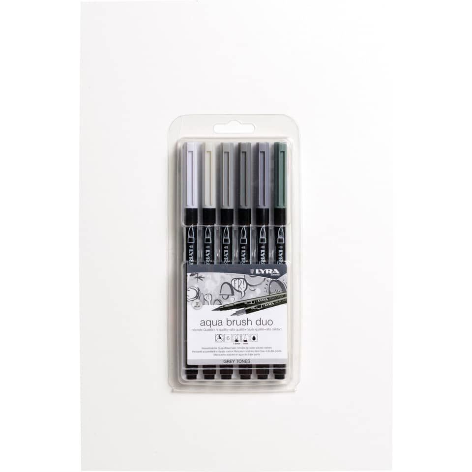 Pennarelli AQUA BRUSH DUO astuccio appendibile Lyra colori grey set - Doppia punta (conf.6)