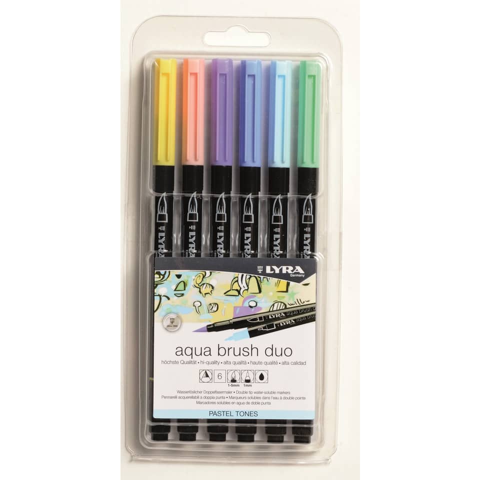 Pennarelli AQUA BRUSH DUO astuccio appendibile Lyra colori pastel - Doppia punta (conf.6)