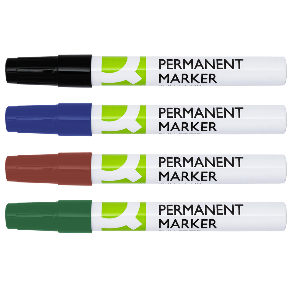 Pennarelli indelebili Q-Connect con fusto in alluminio e punta conica 4 mm – colori assortiti – KF11712 (conf.4)
