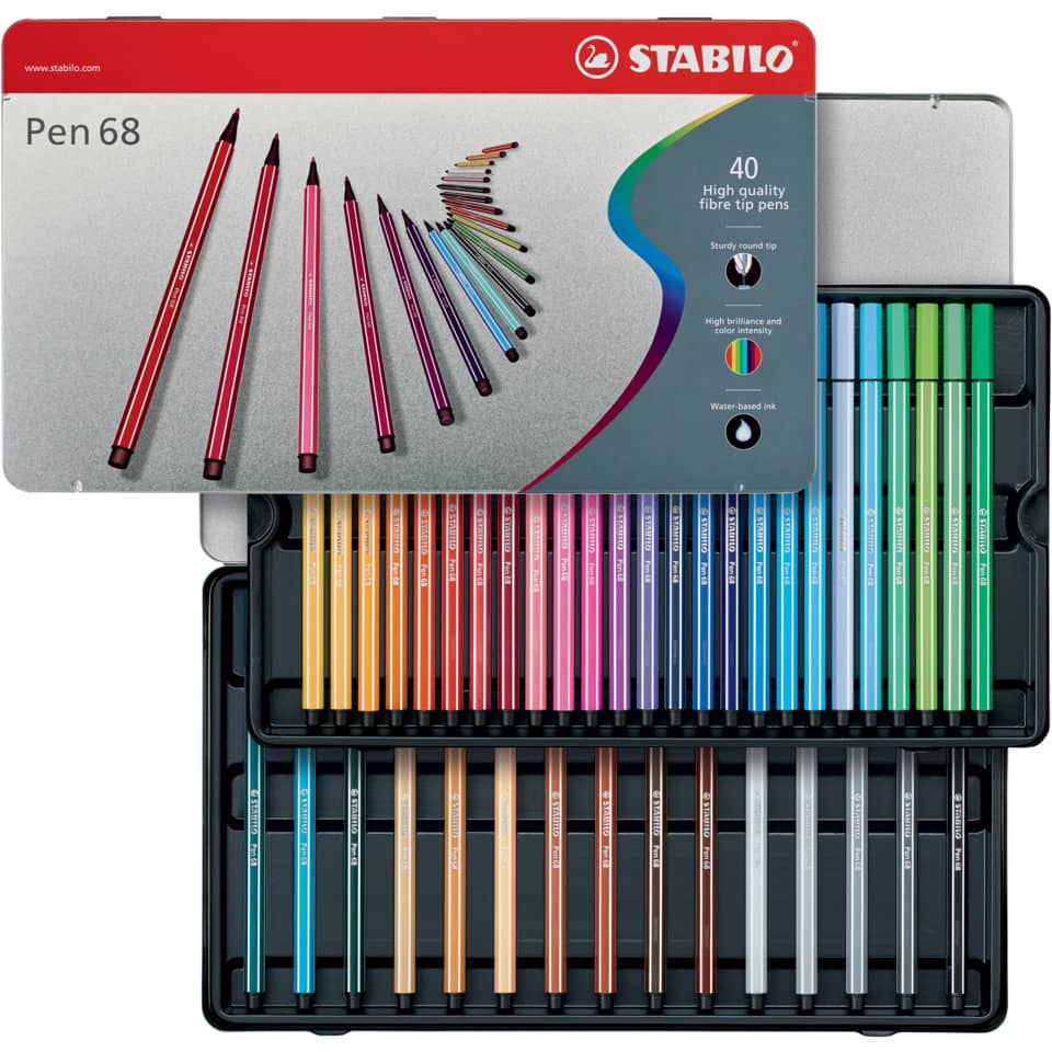 Pennarellini colorati Stabilo Pen 68 in Scatola metallo 2 ripiani – Assortito – 1 mm – da 7 anni (conf.40)