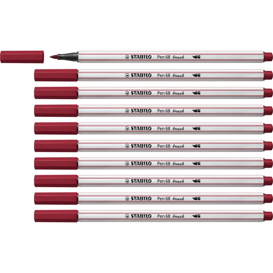 Con il pennarello STABILO Pen 68 brush puoi controllare perfettamente i tuoi tratti, creando bellissime lettere in vero stile hand lettering. Potrai realizzare bellissime opere in modo semplice e veloce. Con la sua punta flessibile, questo pennarello si aggiunge alla famiglia Pen 68 ed è adatto sia ai principianti che agli artisti esperti. Variando la pressione sulla punta puoi usare il ''pennello'' per creare linee spesse o sottili sulla carta. Puoi creare altri effetti speciali con l'inchiostro a base d'acqua: bellissime sfumature di colore o fantastici acquarelli. Strumento ideale per decorazioni e lavori fai da te. Risultati garantiti e garanzia tedesca. Ideale per chi è alle prime armi con il brush lettering: grazie alla sua punta a pennello molto flessibile, hai subito la percezione della pressione che stai facendo. Usa la giusta pressione per disegnare line più spesse o più sottili: la punta è stata sviluppata proprio per i principianti! Per artisti più esperti, Pen 68 brush copre un ampio spettro creativo: dalle applicazioni artistiche all'ombreggiatura e all'acquarello. Combina le tue sfumature preferite e i risultati saranno unici. L'inchiostro a base d'acqua fornisce un ulteriore tocco creativo: usalo per creare fantastici effetti speciali come la fusione dei colori o gli effetti dell'acquerello Pen 68 brush dura 24 ore senza cappuccio e la punta non secca! Sviluppato da e insieme ai nostri fan - realizzato per soddisfare tutte le esigenze creative. Realizzato in Germania. Prodotto in conformità con il regolamento REACH (CE) n. 1907/2006. Prodotto in conformità con la direttiva sulla sicurezza dei giocattoli 2009/48/EC. Prodotto in conformità con la norma europea EN71 - 1, 2, 3 e 9. Marchio CE. Prodotto in conformità con la direttiva 94/62/EC sugli imballaggi e i rifiuti di imballaggio. Età consigliata: 8 anni in su.