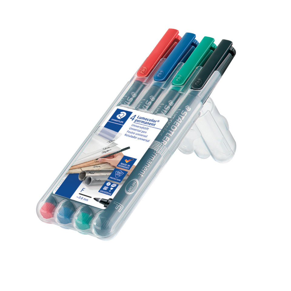 Pennarelli a punta sintetica Staedtler Lumocolor® permanent pen 318 – F – 0,6 mm – Astuccio da 4 pezzi Colori Assortiti