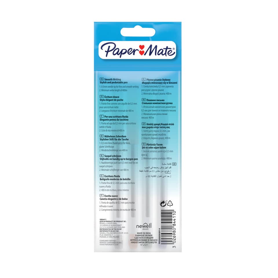 Penne gel con cappuccio Paper Mate PM Jiffy 0,5 mm Nero/Blu/Rosso/Verde – 2084411 (conf.4)
