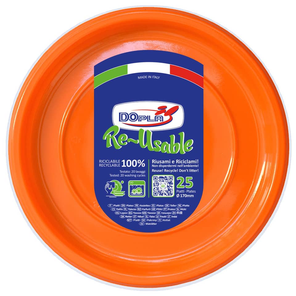 Piatti frutta Arancioni in polistirene h.18 mm Dopla Reusable Ø170 mm – 11742 (conf.25)