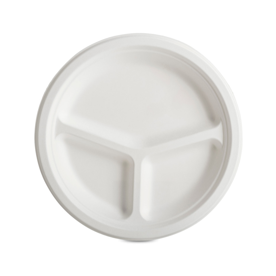 Piatto piano a 3 scomparti in canna da zucchero Oasis Green conf. 50 pz Ø 26 cm OAS-007CA