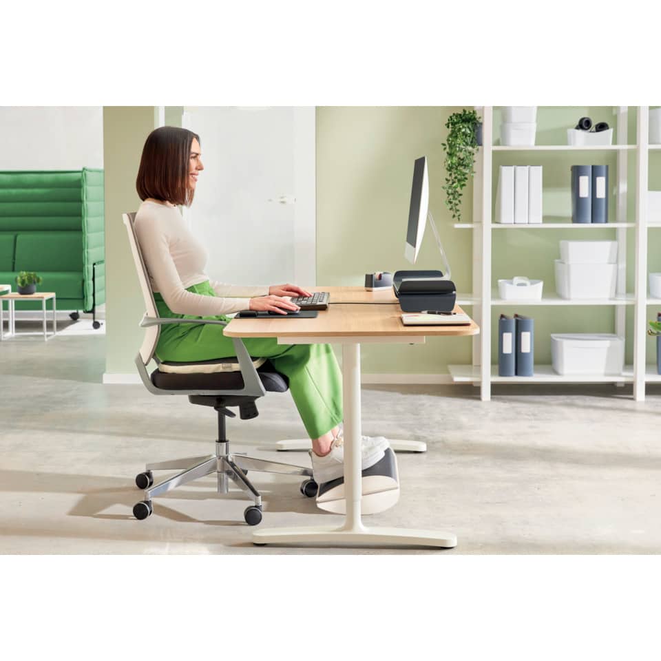 Il poggiapiedi Leitz Ergo Under Desk è il supporto perfetto per creare uno spazio di lavoro confortevole e attivo. Progettato per offrire il massimo comfort durante la seduta, questo poggiapiedi da ufficio combina i vantaggi ergonomici di un poggiapiedi a dondolo con un supporto regolabile per i piedi. Il poggiapiedi regolabile per computer ha 2 impostazioni di altezza con una piattaforma sia piatta che curva per garantire una postura ergonomica e una posizione di digitazione corretta. Rimanete attivi mentre lavorate grazie al movimento a dondolo che favorisce una sana circolazione sanguigna e aumenta la produttività. Grazie al suo design minimalista e la finitura opaca, questo elegante poggiapiedi può avere un impatto positivo sul benessere, creando senza sforzo un perfetto ambiente di lavoro attivo. Combinate con altri prodotti Leitz Ergo per ottenere uno spazio di lavoro invitante e flessibile che vi aiuterà a rimanere attivi e produttivi durante la giornata. Dimensioni: 508 x 135 x 300 mm. Peso: 2,68 Kg.