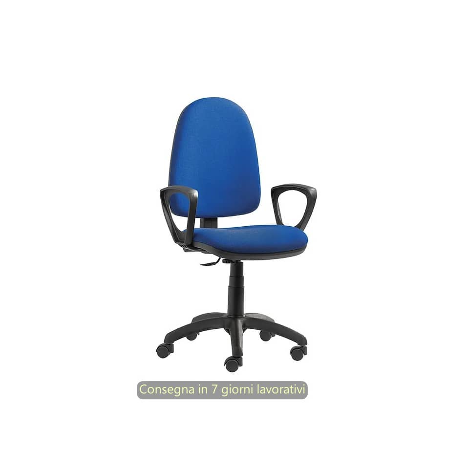 Poltrona operativa Seditaly Sofia CPM con meccanismo a contatto permanente tessuto ignifugo e braccioli fissi blu