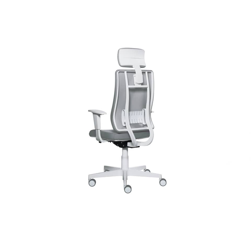 Poltrona semi-direzionale Liberty Syncro Seditaly scocca Bianca tessuto ignifugo con poggiatesta Grigio scuro