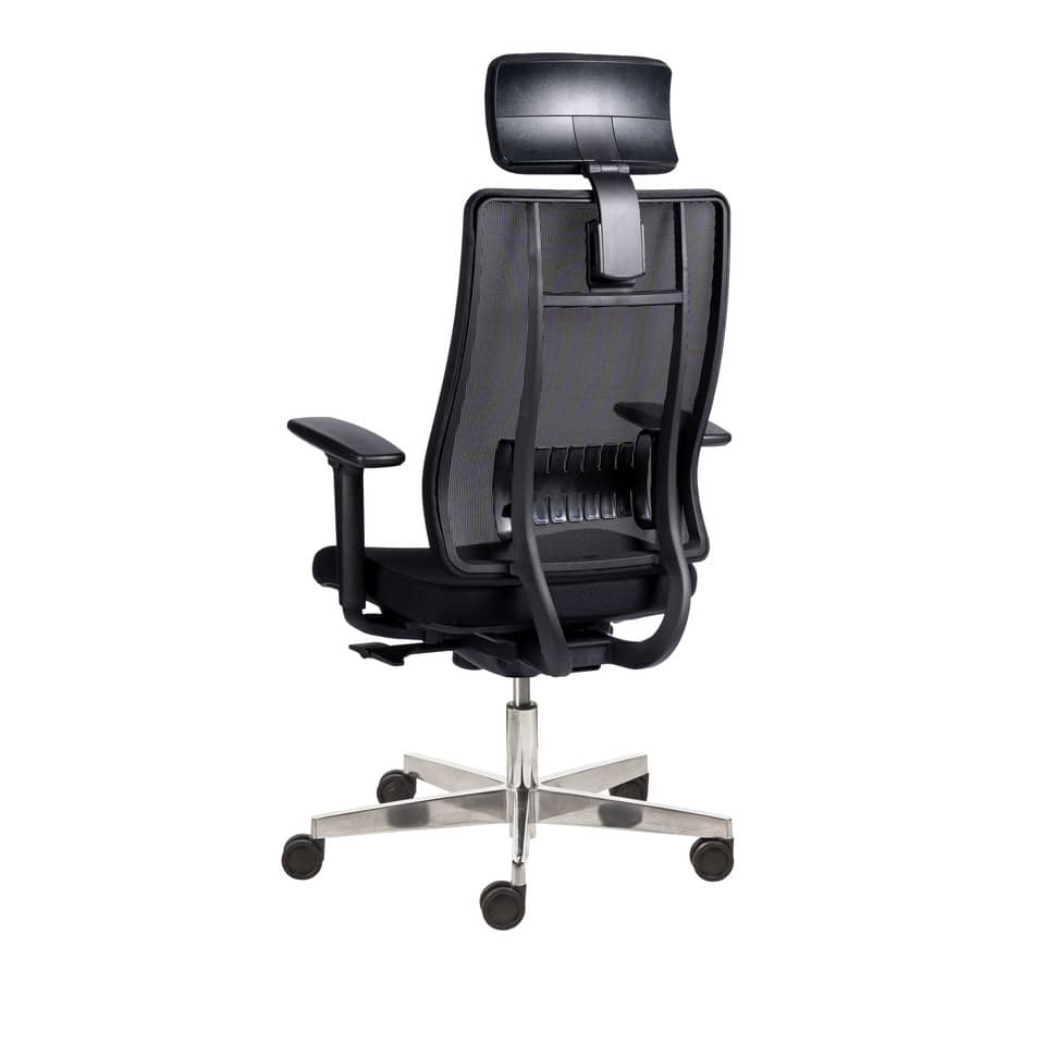 Poltrona semi-direzionale Liberty Syncro Seditaly tessuto ignifugo Nero base alluminio con poggiatesta LTGPS18EGB1R1