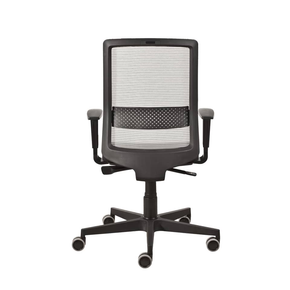 Poltrona semi-direzionale Olimpia Syncro con braccioli regolabili e schienale ergonomico a rete. Colore nero. Meccanismo Syncro regolabile in 4 posizioni con traslatore longitudinale del sedile e regolazione di tensione e sicurezza anti-shock. Schienale a rete con poggiareni flessiblile e regolabile. Sedile imbottito ad alta densità rivestito con tessuto ignifugo. Dimensioni ingombro 68 x 66 x 95 cm. Misure sedile L. 50 x P. 47 cm, schienale L. 49 x H. 54 cm, poggiatesta L. 26 x H. 16 cm. Regolazione in altezza del sedile da 41 a 52 cm. Base D.700 mm in poliammide caricato 30% FV. Ruote piroettanti D. 65 mm. Sedile interno in multistrato di faggio 11 mm con imbottitura alta densità 40 kg/m3 di spessore 40 mm. Carter in PP antigraffio nero. Struttura schienale in poliammide nero. Rete 100% poliestere. Supporto lombare flessibile in PP. Peso 18 kg, portata utile 120 kg 8 ore/giorno. Rispetta il d.lgs 81/08 all.xxxiv. Prodotto 100% Made in Italy. La garanzia è valida nell'ambito di un utilizzo normale e corretto della sedia e non si applica a quelle parti che sono naturalmente soggette ad usura, come i rivestimenti, le imbottiture e le superfici verniciate. La garanzia si applica a tutte quelle parti della sedia che ne garantiscono la funzionalità, come ruote, base, gas, meccanismi. Una qualsiasi manomissione o tentativo di riparazione da parte di persone non specializzate fa decadere automaticamente la garanzia. Questa garanzia non riconosce alcuna responsabilità o diritto di indennizzo per tutti gli eventuali danni, diretti o indiretti, causati da merce difettosa.