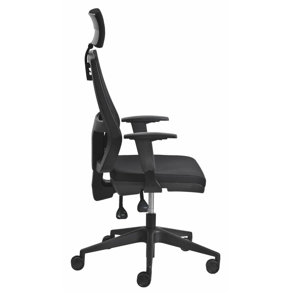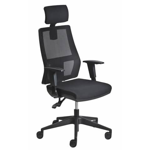 Poltrona semi-direzionale Seditaly Unica Back-system tessuto ignifugo Nero - braccioli regolabili e poggiatesta