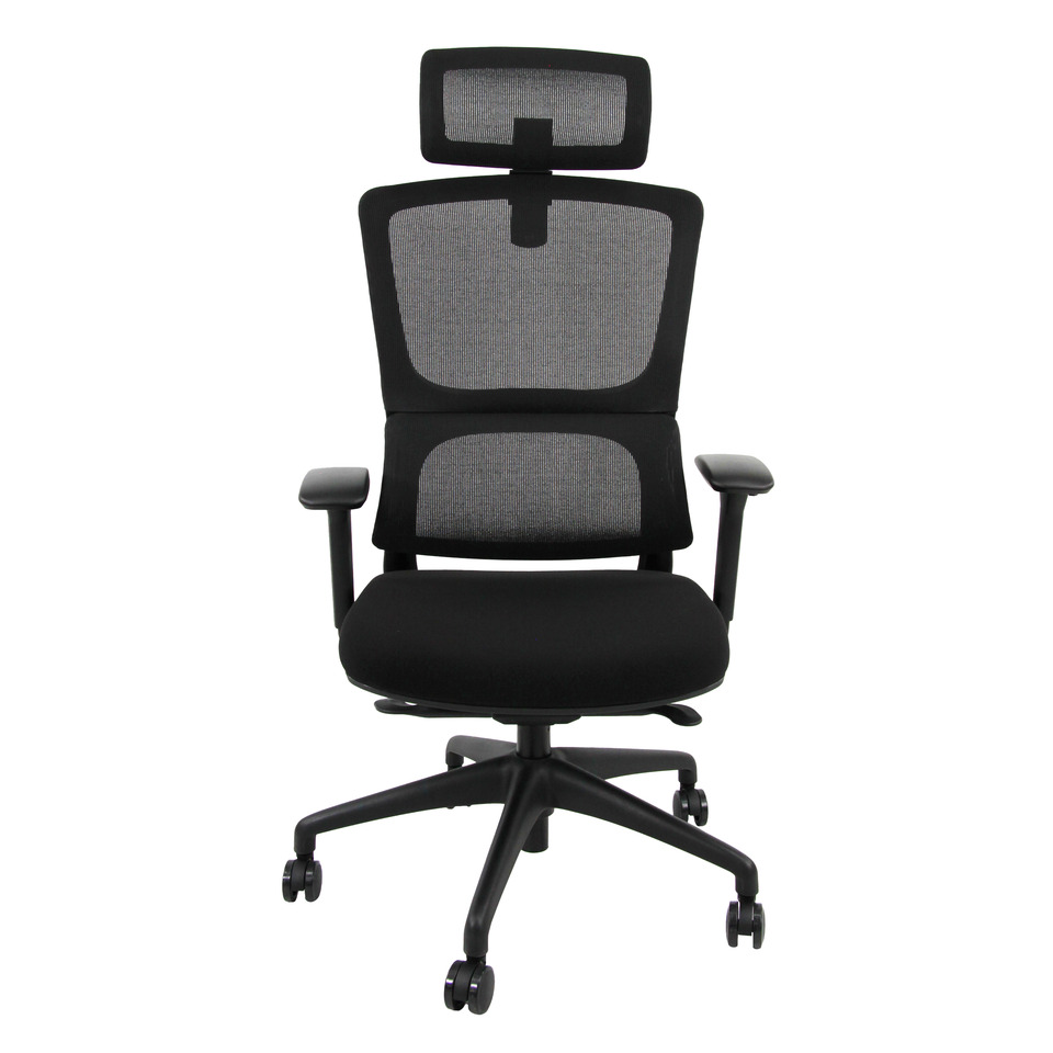 Poltrona Unisit CH3255 semi-direzionale ergonomica con braccioli con poggiatesta e poggiareni in rete nero – CH3255