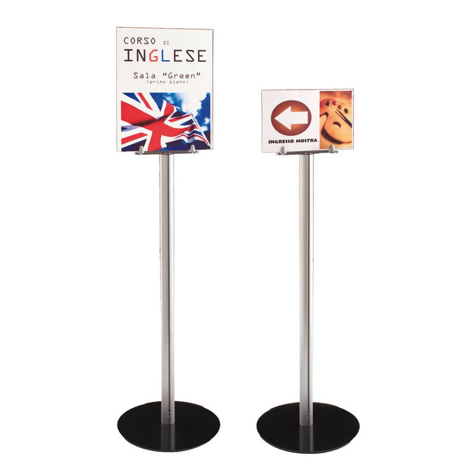 Il design verticale di questo porta segnaletica ottimizza lo spazio e garantisce una visibilità eccellente del contenuto esposto. Ideale per uffici, reception, sale d'attesa, negozi, centri commerciali, fiere ed eventi, l’articolo si adatta facilmente a qualsiasi contesto. La sua struttura su piantana offre stabilità e sicurezza, mentre la finitura silver conferisce un tocco di modernità ed eleganza. Realizzato con materiali di alta qualità, questo prodotto assicura durata nel tempo e resistenza all'usura. La possibilità di esporre formati A3 consente di presentare informazioni dettagliate, grafici, immagini e messaggi promozionali in modo efficace. L'espositore è perfetto per segnaletica direzionale, avvisi di sicurezza, promozioni speciali, menu, informazioni turistiche e molto altro. Questo modello offre un'alternativa pratica e versatile ai tradizionali cavalletti o supporti da tavolo.