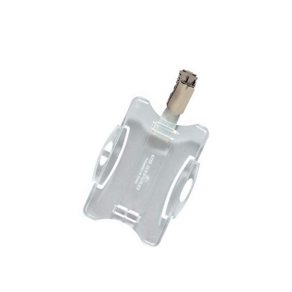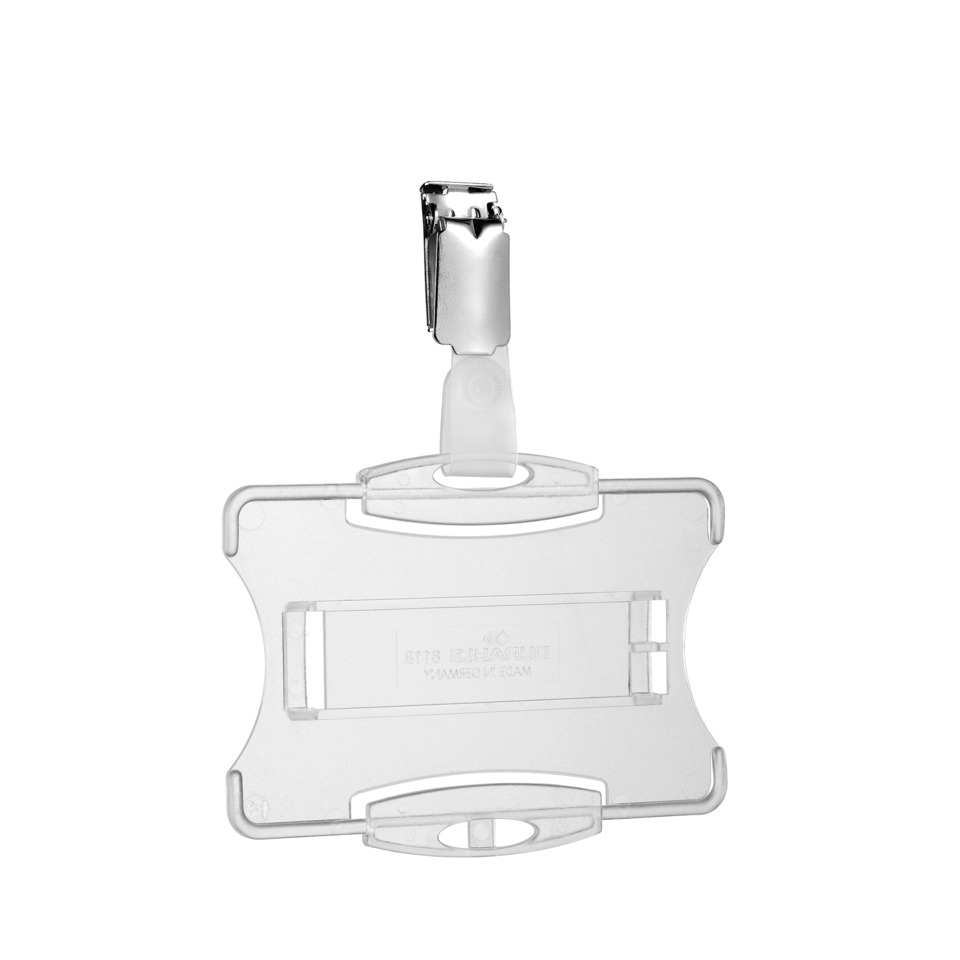 La caratteristica distintiva di questa soluzione è la sua clip di sicurezza orientabile, che garantisce una presa salda e sicura su diversi tipi di tessuto, evitando scivolamenti o distacchi accidentali. La trasparenza del badge permette l'inserimento di inserti personalizzati con loghi aziendali, foto del personale o altre informazioni rilevanti, contribuendo a rafforzare l'identità visiva dell'azienda. Realizzato con materiali resistenti agli urti e all'usura, il Portabadge Durable è progettato per durare nel tempo, riducendo la necessità di sostituzioni frequenti. Questo significa un risparmio economico a lungo termine e un contributo alla sostenibilità ambientale. Il design elegante e minimalista si adatta a qualsiasi contesto, rendendolo ideale per una vasta gamma di settori professionali. Il badge è una soluzione di identificazione versatile, utilizzabile in reception, sale conferenze, laboratori e in qualsiasi ambiente in cui sia necessario riconoscere il personale in modo rapido ed efficiente. Il formato compatto e la leggerezza contribuiscono al comfort durante l'utilizzo prolungato, evitando fastidi o irritazioni.- Contiene 25 Portabadge rigidi
