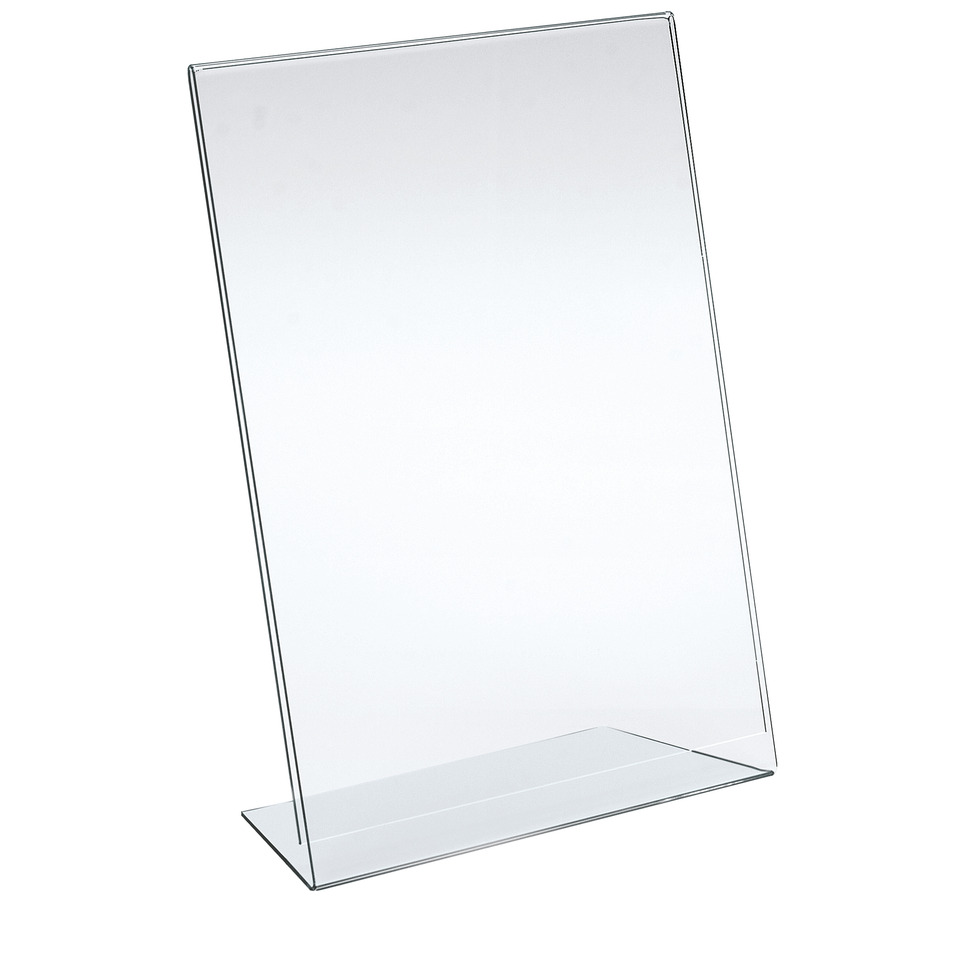 Portadepliant in acrilico con base a L Lebez formato 9×13 cm – verticale – Trasparente – 7043