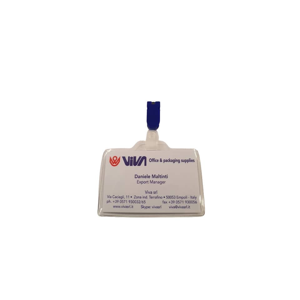 Il Portanome in pvc Viva aggancio-cartoncino è estremamente versatile e può essere utilizzato in una vasta gamma di contesti. In ufficio, permette di identificare facilmente i dipendenti, i visitatori o i fornitori, migliorando la sicurezza e l'organizzazione. Durante eventi e fiere, facilita il riconoscimento degli espositori, dei relatori o dei partecipanti. Nel settore della vendita al dettaglio, può essere utilizzato per identificare il personale di assistenza clienti o i responsabili di reparto. Oltre a queste applicazioni, l'articolo è ideale per scuole, università, ospedali, centri congressi e qualsiasi altra attività che richieda un sistema di identificazione visiva efficace. La sua compattezza e leggerezza lo rendono comodo da indossare, senza creare fastidi o intralciare i movimenti. Questa soluzione per l'affissione di nominativi è un accessorio indispensabile per chiunque desideri migliorare la comunicazione e l'organizzazione del proprio ambiente di lavoro o evento. Il prodotto, grazie alla sua realizzazione in pvc, è facilmente pulibile e disinfettabile, garantendo un elevato standard di igiene.- Confezione da 100 pezzi: Ideale per grandi aziende e eventi numerosi.