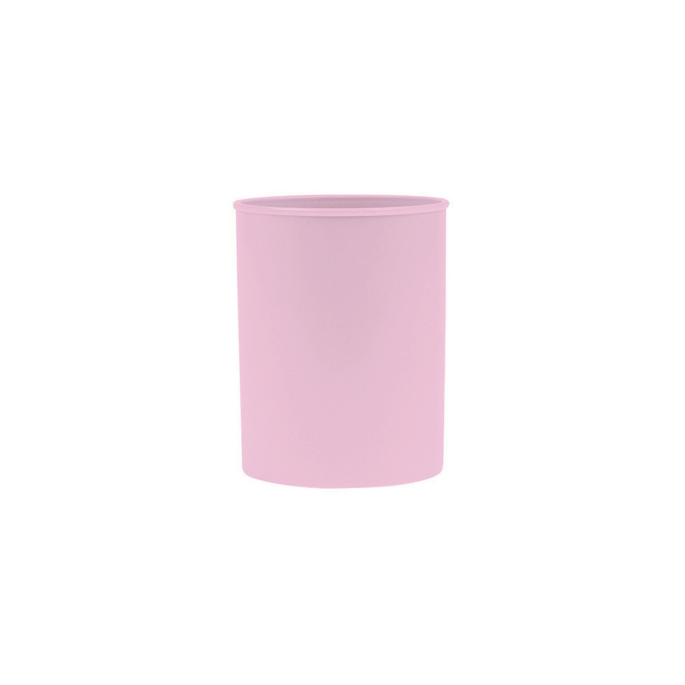 Portapenne in polipropilene rotondo viola pastello. Diametro: 7,5 cm. Altezza: 9,5 cm. 100% riciclabile. Appositamente progettato per uso scolastico. Certificato secondo la norma EN 71.
