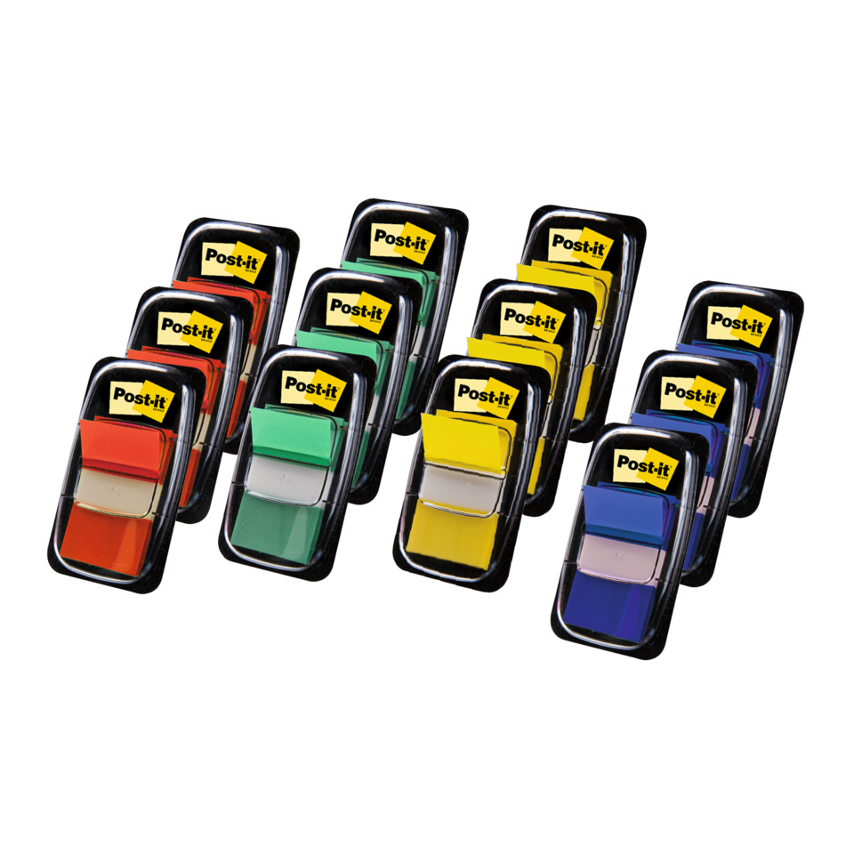 Segnapagina Post-it® Index 680 – segnapagina – Blu, Giallo, Rosso, Verde (conf.12)