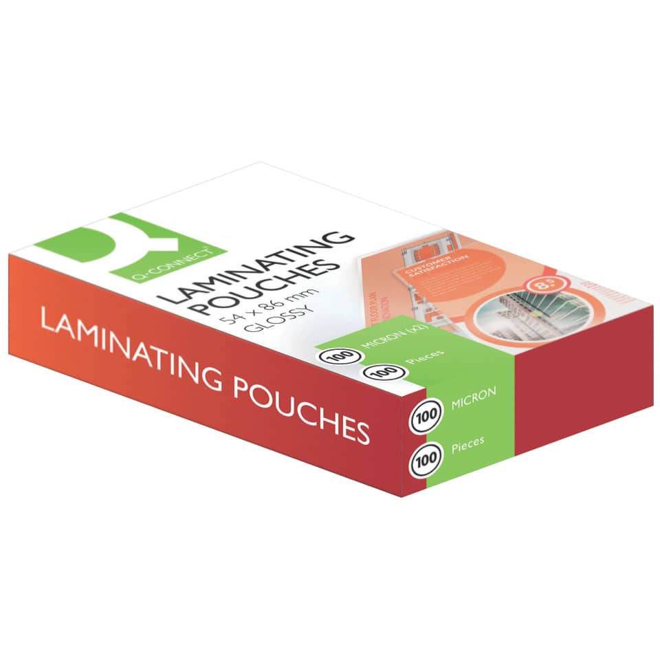 Pouches per plastificatrici Q-Connect 2×100 µm finitura lucida 54×86 mm – KF01202 (conf.100)